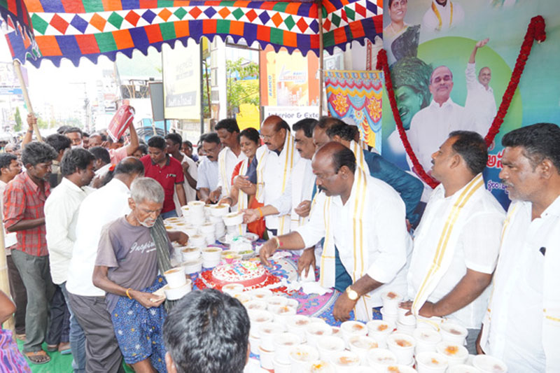 Dr.P.C.Rayulu, Chairman of Dr.YSR PRAJA PRASTHANAM SEVA TRUST has cut the cake and conducted free distribution of clothes and foods to the poor people at CM YSJagan Birthday on 21.12.2020 in Gandhi Road.